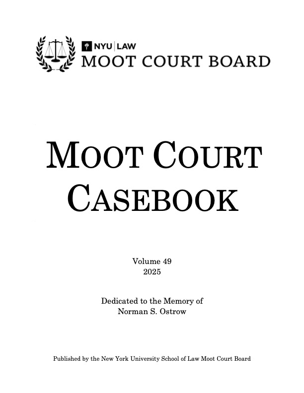 We are happy to announce that as of December 19, 2025, the digital version of Volume 49 of NYU Law Moot Court’s Casebook is available to all subscribers.* Once logged in, you can view the opening pages and individual downloadable files for each problem listed below. Each download contains both (1) the Memorandum of Law and (2) the Record, in PDF and Word formats.